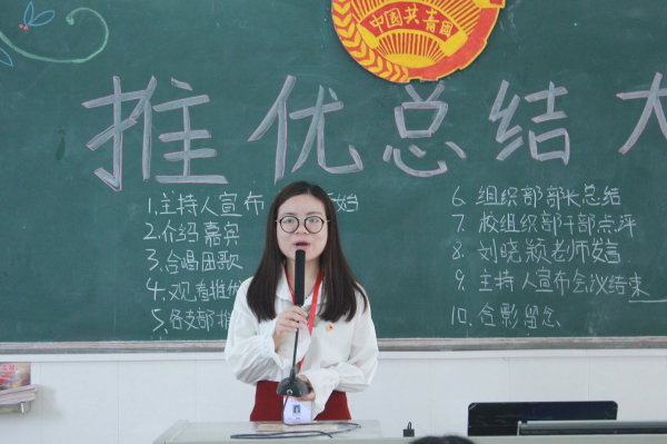 最后,刘晓颖老师对本次大会进行总结发言。她指出此次推优总结大会的不足之处并提出改进措施。她希望各团支书在上台总结时要将扬长避短的具体改进措施展示出来,且在上台发言时要注意仪表仪态。同时,她建议未推优成功的同学向推优成功的学生学习,反思自身不足,争取下一次推优成功。
