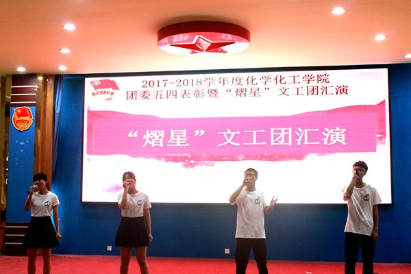 为表彰过去一年在组织建设、学风建设、校园文化建设、社会实践服务等工作中做出积极贡献先进集体和先进个人,同时展示文工团一年来的训练成果,5月19日下午,化学化工学院于弘雷楼311室召开2017-2018学年度团委五四表彰大会暨熠星文工团汇演。学院党委张飞燕书记、李梓副书记出席本次活动。
