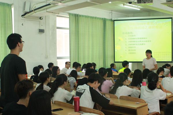 5月27日早上,化学化工学院在燕雷楼C栋413举行2018年暑假“三下乡”社会实践调研培训。出席本次活动的嘉宾有辅导员陈艳君、学院团委副秘书长肖婉滢、秘书处干部陈慧雅、组织部干部陈辉、校创新创业实践中心干部蒋慧仪以及2017年三下乡调研组的两位优秀代表黎沛颜、陈思佳。