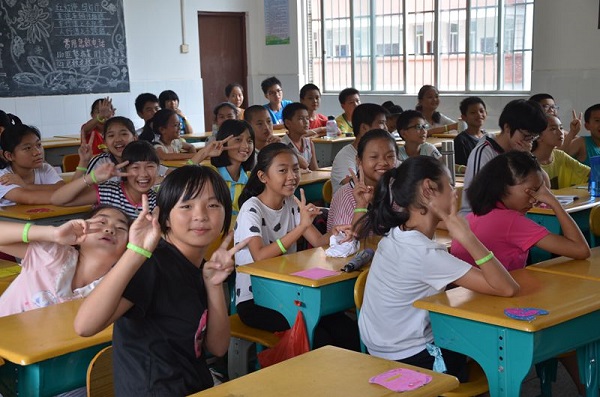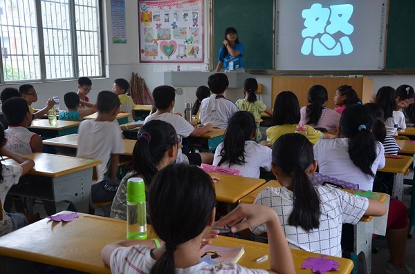 7月14日,一个美丽的日子,长坡镇中心小学五年级的学生也终于等到了他们美丽的蒲公英社会实践队员甘海铃老师给他们上话剧课。