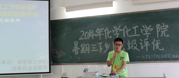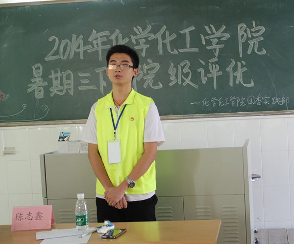为展现“三下乡”实践成果,推广经验,激发同学们参加“三下乡”活动的热情,7月14日下午,化学化工学院团委社会实践部在燕雷楼712举行了2014年暑期三下乡DV院级评优会议,参加会议的嘉宾有化学院团委秘书长陈志鑫和副秘书长黄思韵。