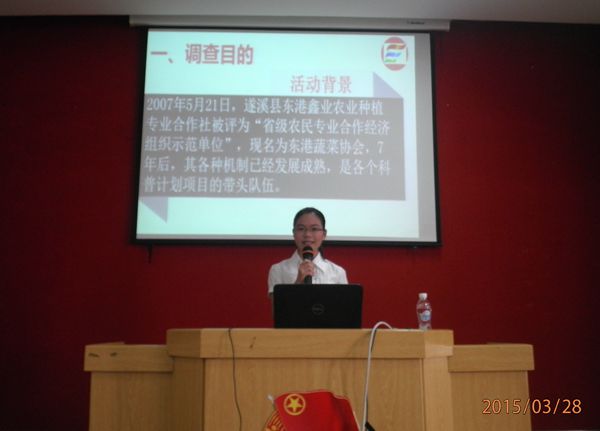 弘扬学术,激励创新,3月28日,为让同学们对科普惠农的知识更加深刻,化学化工学院13制药李宜檀主讲的《关于遂溪县东港镇科普惠农计划实施情况的调研报告》学术报告会于鸿园四楼学术报告厅举行,出席本次会议的有化学化工学院团委创新创业部的干部。