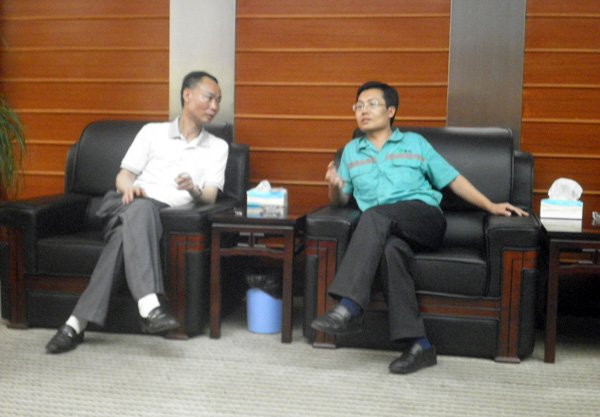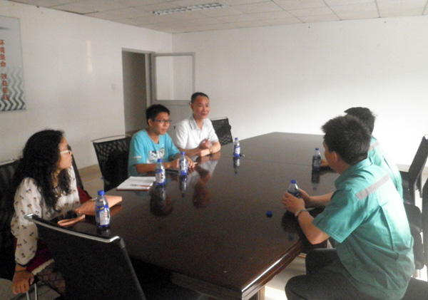 刚到那里就接到了纸厂的徐主任的热情招待,大家在会议室聊了一会后,徐主任便带大家去参观他们的纸厂,这间厂机械化程度达百分之八九十,管理规范,环境良好,据笔者观察,在这里很少会有一般化工厂的难闻气味。