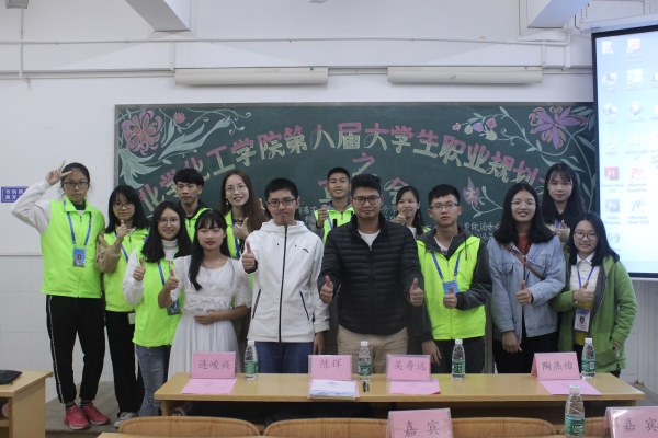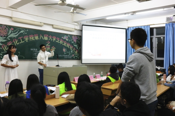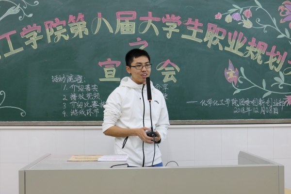 为引导学生正确地进行自我认知、自我评价,让他们对未来职业发展做好充分准备,12月8日晚上,化学化工学院团委创新创业部在燕雷楼C栋602室举办以“规划理想职业,成就精彩人生”为主题的第八届大学生职业规划大赛宣讲会。出席本次活动的嘉宾有化学化工学院团委指导老师吴寿远,招生与就业处就业服务中心指导部正职负责人陶燕怡,团委副职负责人陈辉以及往届优秀参赛选手连峻兴。