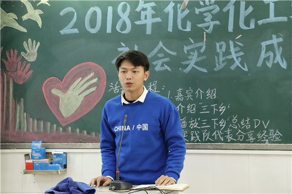 会议在团委学生干部对“三下乡”社会实践活动的整体总结性介绍中拉开序幕。在总结DV展示环节中,同学们领略到了化学化工学院每支队伍在“三下乡”社会实践过程中的特色和风采。随后,四个代表队伍的队长分别上台发言,他们主要从“三下乡”活动的前期准备,中期准备以及后期总结三方面进行经验分享,并结合他们“三下乡”期间的个人感受提出对“三下乡”的不同看法。其中,“高飞”社会实践队队长李卓谈及支教过程中应具备创新意识,他表示队员们应利用内外结合特色教学模式,让孩子们学习更全面的知识。“团委三下乡”社会实践队队长刘钰滢则提到队员之间沟通的重要性,她认为只有良好的沟通才能保证工作的顺利进行。“萌芽”党员社会实践队队长赖俊铭提到参加“三下乡”实践活动所应具备的三心——爱心,耐心,责任心,并希望即将参加“三下乡”实践活动的同学认真去寻找自己参加“三下乡”活动的真正意义。