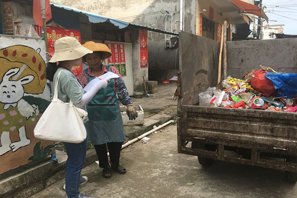 调研组进行环保宣传(钟苑玲 摄)