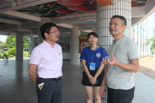 为深入了解“北极星”社会实践队三下乡活动进展情况,7月19日上午,化学化工学院党委副书记程向前、学院老师黄倩倩、张永飞、陈艳君以及指导老师刘晓颖赴高州市沙田第一中学探望和慰问“北极星”实践队全体队员,对其实践工作给予支持与指导。