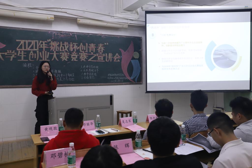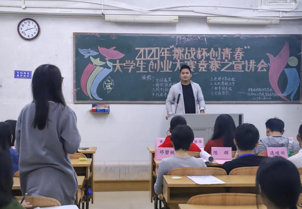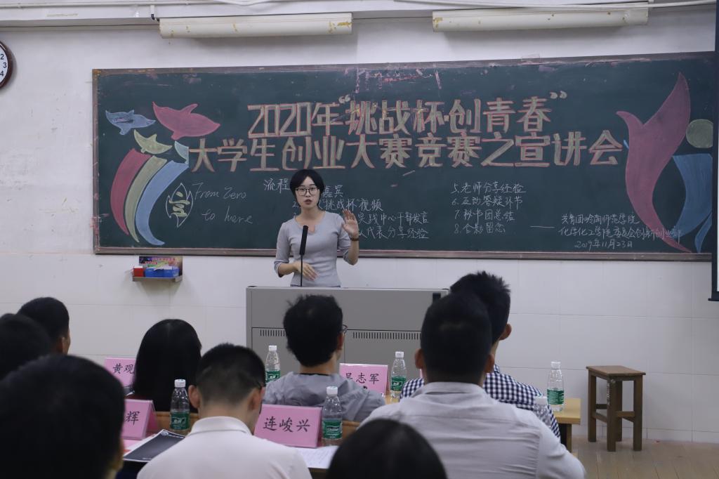 11月23日晚,化学化工学院于燕雷楼C栋301室举办“挑战杯•创青春”大学生创业竞赛宣讲会。出席本次宣讲会的嘉宾有化学化工学院吴志军老师,团委正职负责人陈辉。本次宣讲会旨在让同学们充分了解“挑战杯•创青春”大学生创业竞赛细则,提前做好参赛准备。