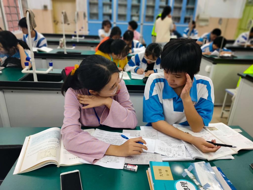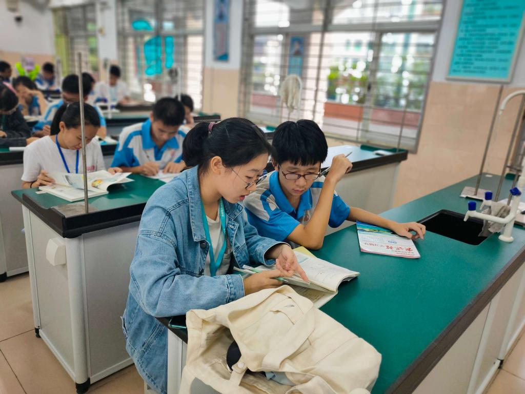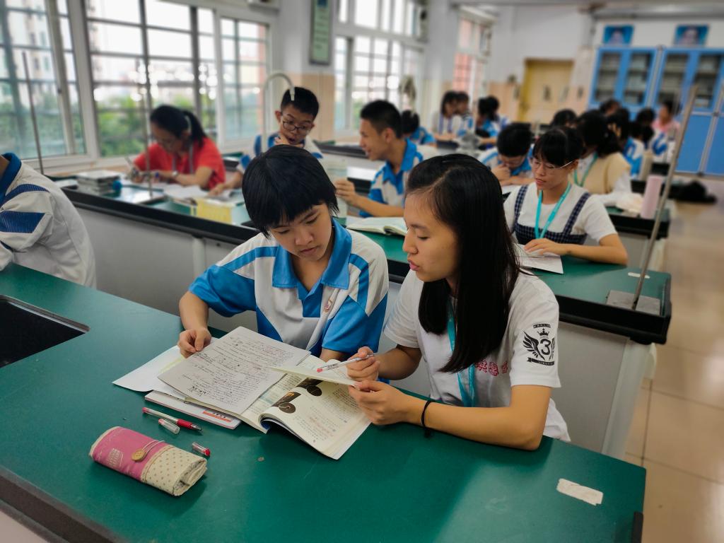 各位参与辅导的同学分别从前期准备、与学生的相知相处以及心得体会三方面讲述活动带给他们的感受。黎陈琼向大家展示了辅导对象与她分享棒棒糖的照片,感言她与学生之间的关系不仅仅是师生,更像是朋友,这种良好关系对课程辅导的效果起到了积极作用。邱嘉婷提到,在她的辅导过程中,她很重视培养学生归纳知识点的能力,题型万变,却可利用思维导图来应万变。陈颖超则更别出心裁,他注重对学生思维的培养,通过不断询问学生的解题思路,让学生不断思考自身的解答过程是否正确,以达到锻炼学生思维能力的目的。在辅导过程中,每位同学都使出自己的浑身解数来帮助附中的同学们,谈及收获,他们很高兴地说这次活动既提升了他们的自信心,又提高了自己的语言表达能力,更让他们获得了珍贵的友谊。这次当“小老师”的经历让他们切身感受到教师这一职业的酸甜苦辣,更加了解当一名优秀的教师所需要的技能和品质。