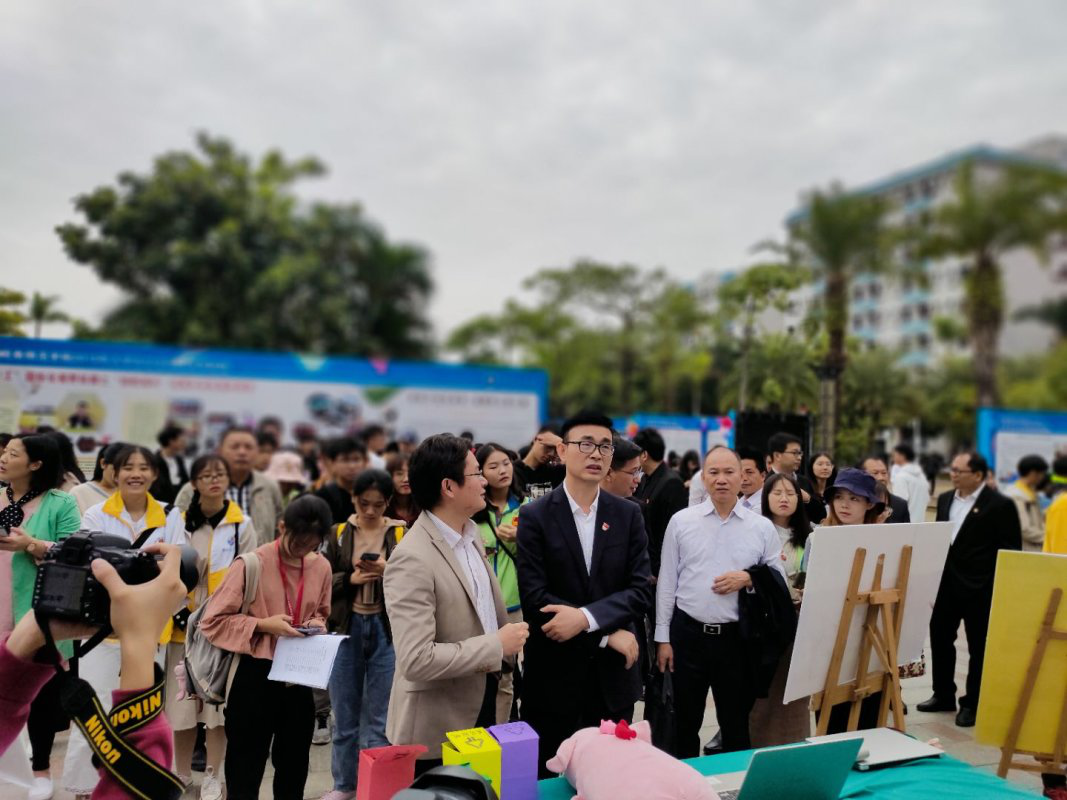 实践干部正在为学生们讲解成果内容