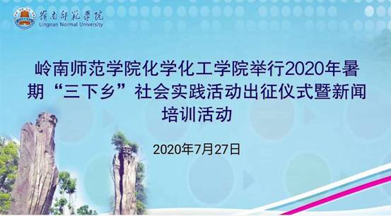 7月27日,化学化工学院2020年暑期“三下乡”社会实践活动出征仪式暨新闻培训活动通过线上与线下相结合的方式举行,化学化工学院12支暑期“三下乡”实践队伍参加了仪式活动。