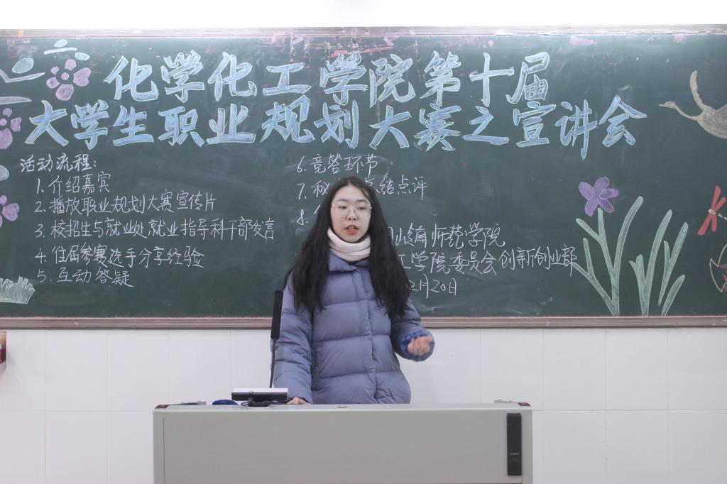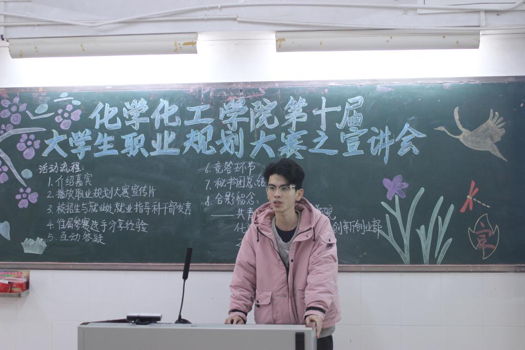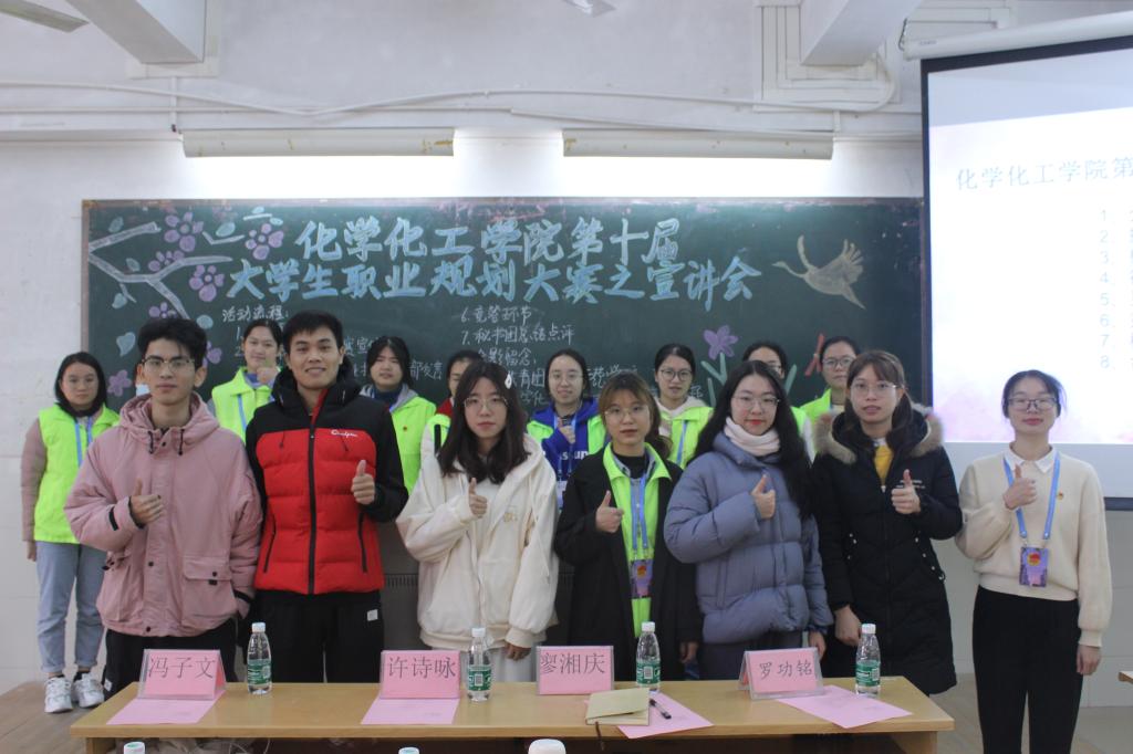 12月20日早,为进一步普及职业规划理念,帮助同学们树立正确的职业观和就业观,推动学院就业指导工作的深入开展,化学化工学院于燕雷楼C栋301室举行第十届大学生职业规划大赛宣讲会。出席本次宣讲会的嘉宾有校招生与就业处就业指导科干部许诗咏,院团委副职负责人廖湘庆以及往届优秀参赛选手等。