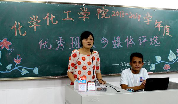 10月18日晚,为进一步加强班级管理建设,提高班级凝聚力,激发广大班长的工作积极性和主动性,充分肯定班长的辛勤工作,由我院学生会办公室主办的化学化工学院2013—2014学年度“优秀班长评选”在燕雷楼D101举行。校学生会办公室主任刘馨、化学化工学院学生会主席团及2012—2013学年度优秀班长汤珂出席了本次活动。