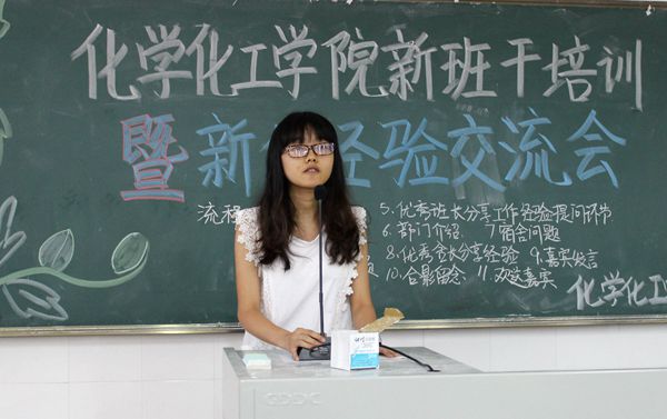 9月20日上午8点半,由化学化工学院学生会宿管部举办的新生班干培训暨新生交流会在燕雷楼D栋102举行。出席本次会议的嘉宾有学生会主席罗思凡以及3位副主席,优秀班长陈灵灵及优秀舍长陈斯斯,张飞意。