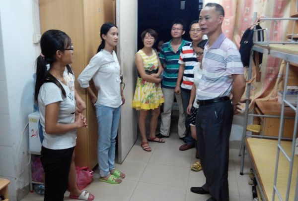 开学之际,为进一步了解学生的生活情况,8月31日晚上,化学院党委李梓副书记携王标诗、林三清、张玲玲、李国壁、罗金等老师及学生会干部深入走访化学院学生宿舍苑区,慰问和鼓励即将开学的同学。