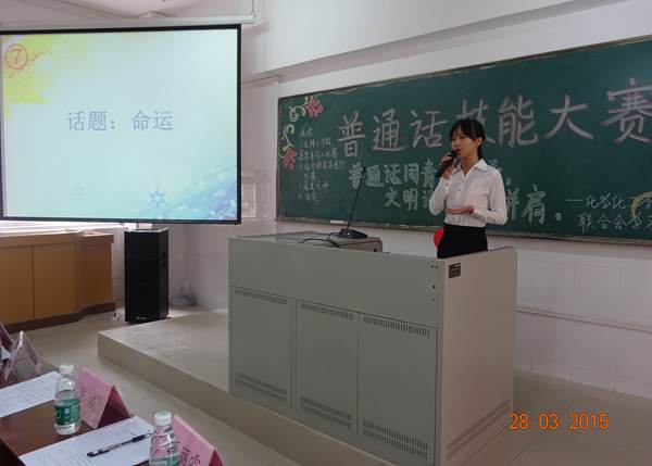 为了提高同学们对普通话的重视,规范普通话的使用,3月28日下午,由化学化工学院学生会学习部联合生活部举办的普通话技能大赛决赛于燕雷楼D301举行。赵敏老师、刘娟老师、广播站的陈威、校生活部干部伍丽霜、曾晓曼、梁进大、化学化工学院学生会副主席罗淑荣、温友红以及各二级学院生活部、学习部干部等出席了本次大赛。