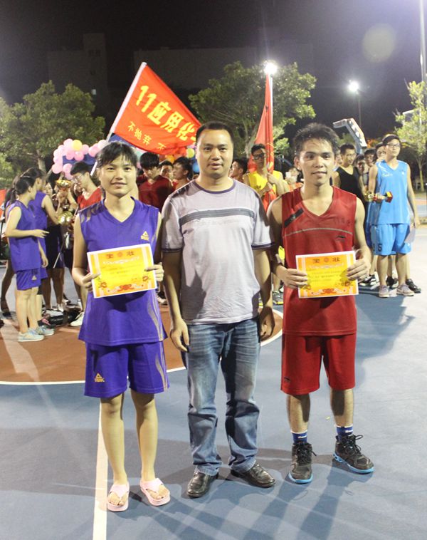本次总决赛闭幕式的颁奖典礼紧接着进行,辅导员苏文义老师为获得冠军的13制药女篮、11应化男篮颁奖。梁进觉、柯海媚两位同学获得MVP称号。