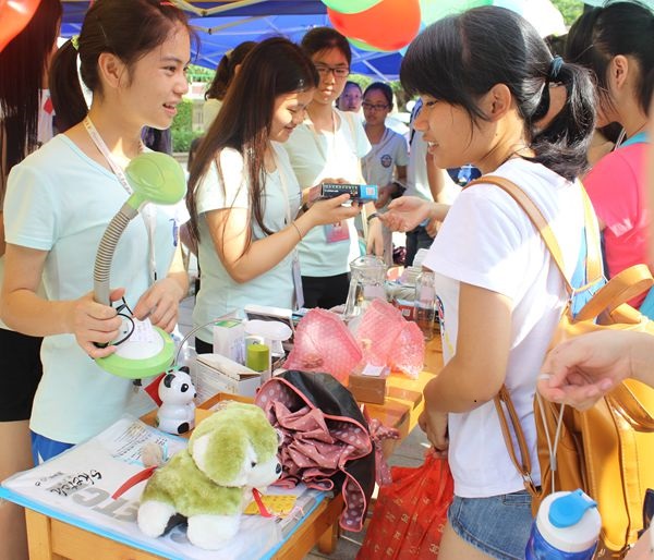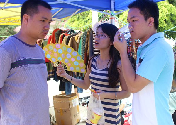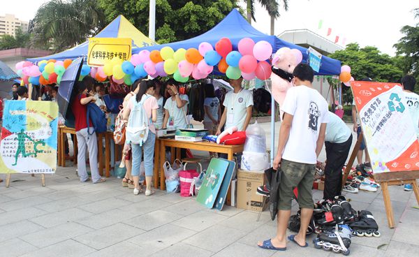 活动前,各二级学院学生会生活部干部向各团支部收集了各种各样的二手商品,这一届的商品比上一次的还要多出好几倍,归类有:服饰类、运动器材类、生活用品类、电子产品类、书本工具类等。一大早,化学院学生会生活部和女生部干部开始布置现场及分类商品,并把那些要出售的商品贴上标签。活动开始后,许许多多的顾客都纷纷来“逛街”,他们咨询着自己心仪的商品,干部们也积极解答客人的问题,即使在这么炎热的天气下晒着,他们依然面带微笑招呼客人。干部们持着“顾客至上”的原则给予顾客温暖的服务,现场其乐融融。