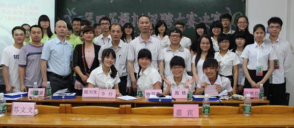 为了给化学院的学生提供一个实践平台,让同学们了解更多的面试知识,明确就业目标,4月20日晚,化学院在燕雷楼C栋605举办第四届模拟招聘大赛决赛,出席本次活动的嘉宾有化学院党委副书记李梓、中国电信赤坎分公司校园中心经理周弼生、校招生与就业处就业市场与信息开发科科长钟召春、湛江市海洋与渔业环境监测站实验室主任吴银笑、湛江师范学院附属中学特级化学教师周栋。