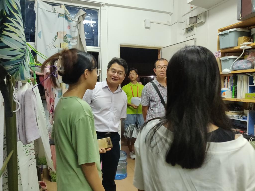 化学化工学院其他党政领导和老师们也在宿舍与同学们深入交流,倾听同学们的假期经历和未来发展设想,勉励大家尽快调整状态,做好新学期的规划和计划,以良好的精神面貌投入到新学期的学习工作中。