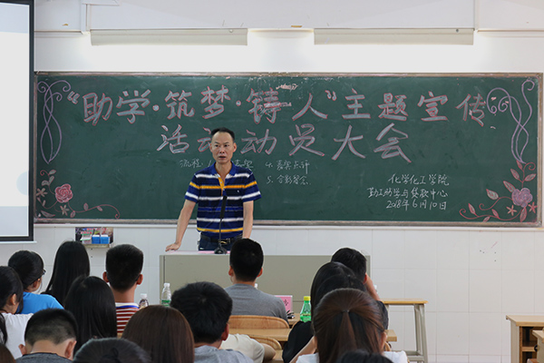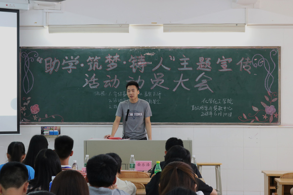 为落实“加强学生资助工作”要求,大力宣传国家资助政策及成效,激励广大受助学生奋发图强、感恩奉献,6月10日下午,化学化工学院于燕雷楼C栋711室召开“助学•筑梦•铸人”主题活动动员大会。出席本次活动的嘉宾有李梓副书记、柴乐浩老师以及校自强社干部詹林倩、林兆宇。