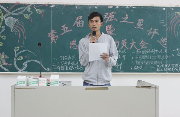 受助生代表宣读捐款倡议书,他详细地介绍粤西地区一些贫困山区的情况,并希望同学们要懂得感恩,把恩情转化为动力,用实际行动为贫困地区的孩子献出自己的一份爱心,以己所能,将永不停息的助人精神传承下去。