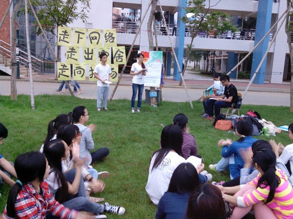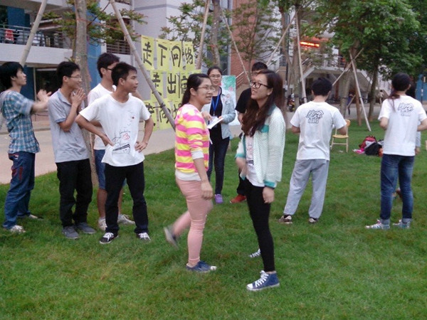 为全面贯彻落实党的十八届三中全会关于“强化体育课和体育锻炼,促进青少年身心健康,体魄强健”的有关精神,4月11日晚,化学院12化本3团支部在湛师燕雷楼前的草坪举行了以“走下网络,走出宿舍,走向操场”为主题的团活动。化学院团委组织部干部黄诗韵、程嘉祺出席了本次活动。