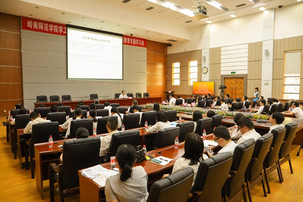 岭师新闻中心讯:10月12日上午,校党委副书记黄达海出席学工系统“不忘初心、牢记使命”主题教育专题学习会暨“标杆岭南”辅导员队伍培训会,带领新聘辅导员宣誓入职,带领全体辅导员重温高校辅导员誓词,为全体学工干部上专题党课,要求学工干部准确把握主题教育的主题主线,切实增强理论自觉,深入学习贯彻习近平新时代中国特色社会主义思想,锤炼忠诚干净担当的政治品格。