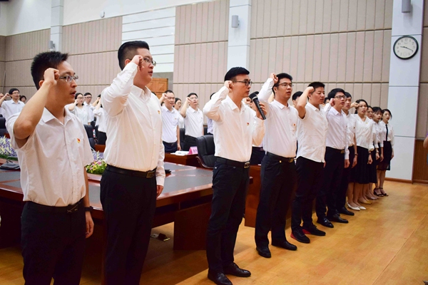 黄达海副书记带领全体辅导员重温誓词(陈文静摄)