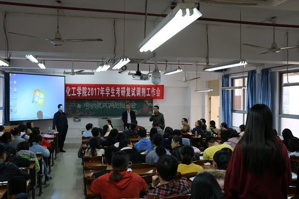 为帮助考研学子及时做好复试和调剂工作,3月1日下午,化学化工学院在燕雷楼D栋301召开2017年学生考研复试调剂工作会。化学化工学院党政领导班子成员、各系主任、13级班主任、全体辅导员以及2017年考研的全体同学参加了本次会议。会议由李梓副书记主持。