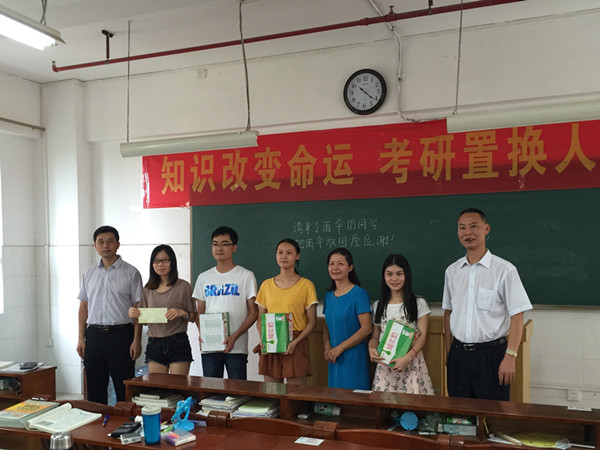 暑期已接近尾声,为检验暑期留校备战考研学生的学习成果,8月30日上午,化学化工学院院长王胜、书记张飞燕、副书记李梓与学院学工办万国权、陈艳君和刘晓颖三位老师到第四教学楼看望考研学生,为同学们送去牛奶和慰问金并与大家就考研一事进行了交流。