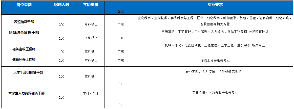 (2)岗位需求:养殖储备干部/环保储备干部/机电储备干部;