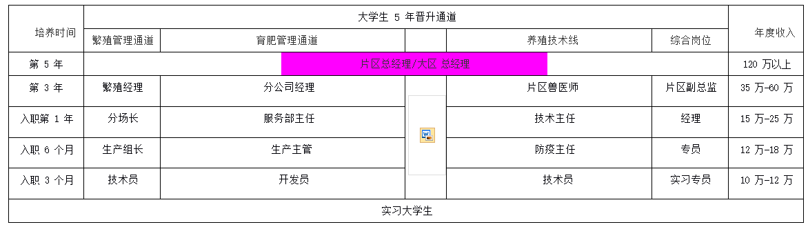 ——30天后备组长带教——30天实习场长轮岗带教--180天述职定岗(配种组长,产房组长,分场长等职务)