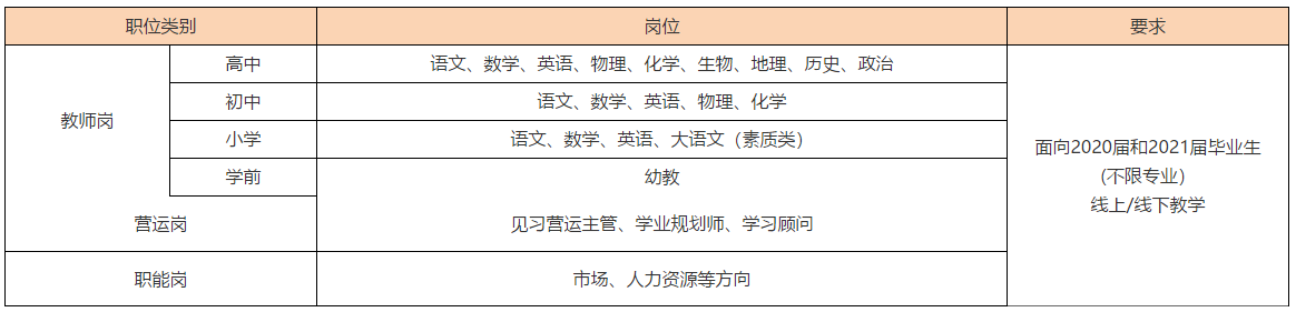 热爱教育行业,学科功底强,坚持一切以学生健康生长为先的理念;持有教师资格证或拥有教学经验者优先;