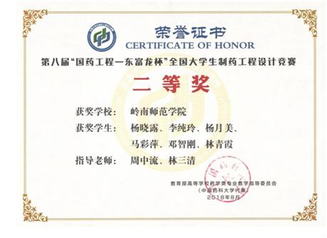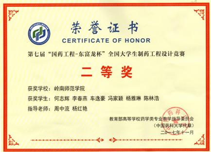 2017年获得全国大学生制药工程设计竞赛二等奖
