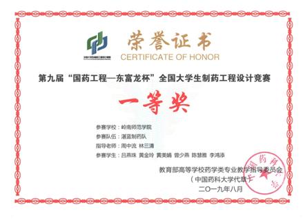 2019年获得全国大学生制药工程设计竞赛一等奖、三等奖