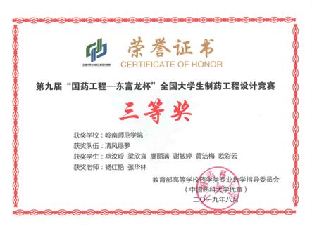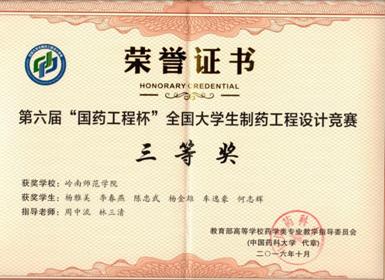 2016年获得全国大学生制药工程设计竞赛三等奖