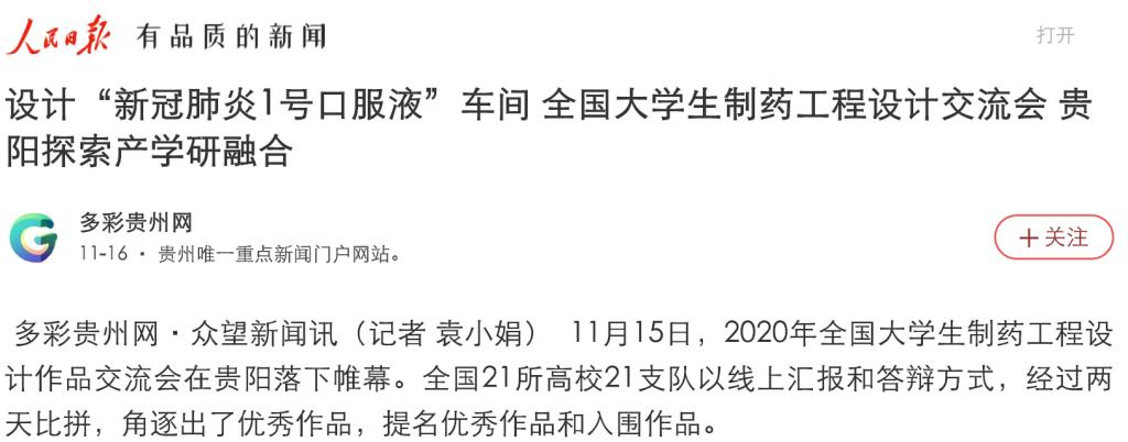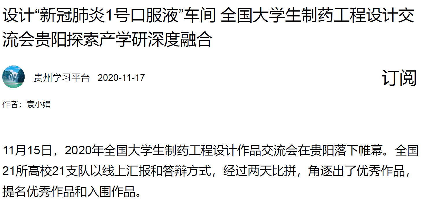 本届全国大学生制药工程设计作品交流会由中国药学会主办,贵州理工学院与贵州省药学会承办,中国医药集团联合工程有限公司和上海东富龙科技股份有限公司协办,行业关注度较高,人民日报、学习强国、众望新闻、天眼新闻等媒体均对本次大赛会议进行报道。我校及化学院高度重视,认真动员组织及全程指导学生参赛,最终喜获佳绩;从中展示岭南师范学院育人质量成果及制药工程专业在培养学生工程设计能力、创新能力等方面取得的成效,极大提高了制药工程专业的社会辐射力。