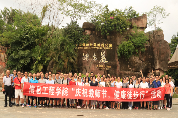 在第三十五个教师节将临之际,近日,信息工程学院分工会组织学院教职工前往湖光岩开展“庆祝教师节 健康徒步行”活动,来庆祝教师自己的节日。信息工程学院党委林汉书记,杨俊杰院长,陈明娟副书记,洪伟铭副院长(分工会主席)和吴涛副院长以及温响东副处级组织员也出席了本次活动。