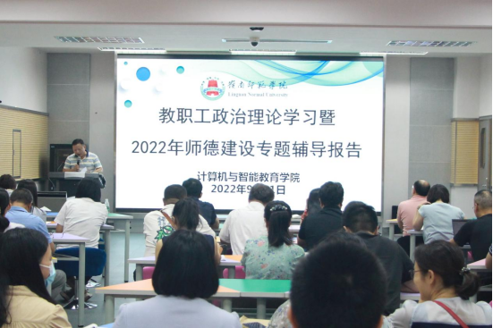 2022年9月21日下午三时,计算机与智能教育学院在雷阳楼B栋802召开全体教职工大会。会议旨在深入学习贯彻习近平新时代中国特色社会主义思想,落实立德树人根本任务,加强师德师风建设。会议上,计算机与智能教育学院党委书记李海文紧绕“迎接党的二十大 培根铸魂育新人”的主题,开展了师德教育月专题讲座,带领全体教职工进行了政治理论学习,以实际行动迎接党的二十大胜利召开。