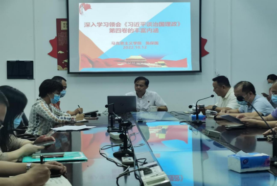 为了加强教职工的思想建设,提升教职工的政治觉悟,进一步学习好、领会好、贯彻好、落实好《习近平谈治国理政》第四卷,2022年10月12日下午,计算机与智能教育学院在综合实验楼B栋101会议室召开专题辅导报告会,会议由学院党委书记李海文主持。