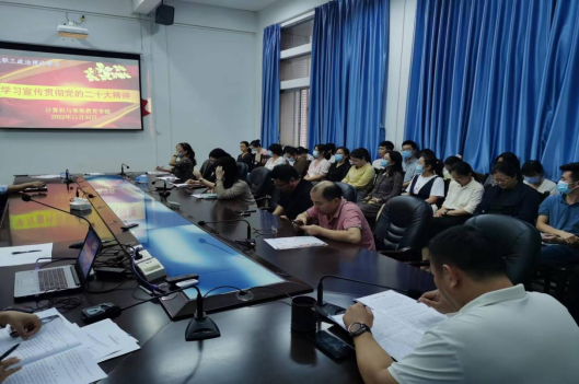 2022年11月30日下午,计算机与智能教育学院全体教职工在综合实验楼B栋101会议室召开全院教职工大会。会议由学院党委书记李海文主持,开展“学习宣传贯彻党的二十大精神”为主题的教职工政治理论学习。