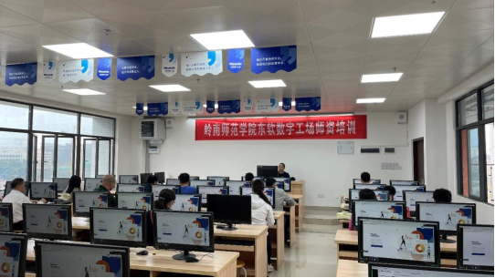 岭南师范学院东软数字工场位于岭南师范学院第五教学楼D栋7楼,占地700多平方米(目前已完成第一期建设),实训工位300个,设置有软件项目开发、人工智能、大数据技术等5个实训室,其通过构建校企合作协同育人体制机制,打造从大学生定制培养、集中训练、顶岗实习到人才输出的完整人才生态链,旨在为区域经济发展提供人才支持服务,推动数字化产业、产业数字化协同发展。