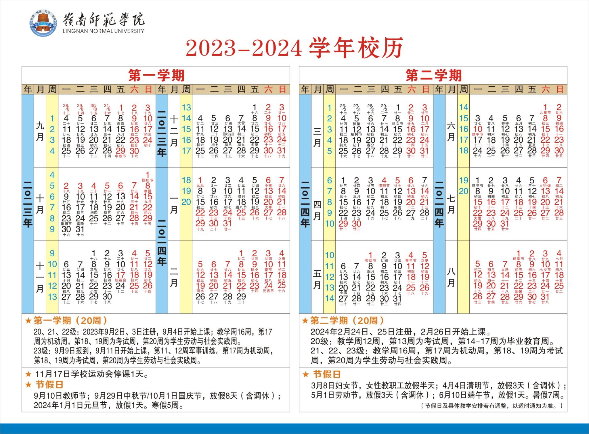 2023-2024学年校历
