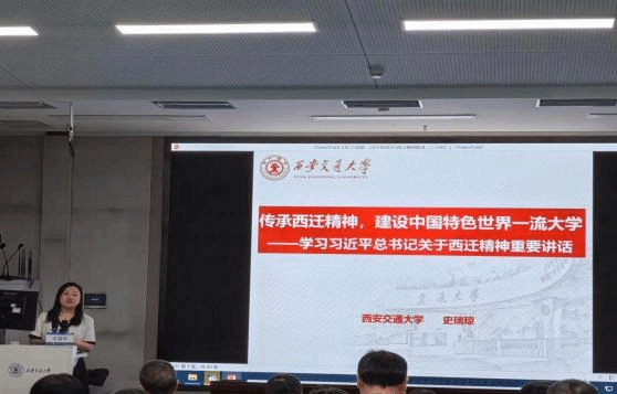 上午,西安交通大学党委宣传部史瑞琼副部长以“传承西迁精神,建设中国特色世界一流大学”为题,深入讲解了交大西迁精神的历史渊源和丰富内涵。她指出,以“胸怀大局,无私奉献,弘扬传统,艰苦创业”为核心的西迁精神不仅是学校历史的重要组成部分,更是生动体现了学校在不同时期的发展与变革,具有深刻的时代价值。史瑞琼介绍了交大如何从教育理念、学科建设、国际合作等方面着手,推动学校向世界一流大学目标不断迈进。这次专题讲座不仅是一次精神的洗礼,也是一次思想的碰撞,激发了老师们对高等教育未来发展的深入思考。