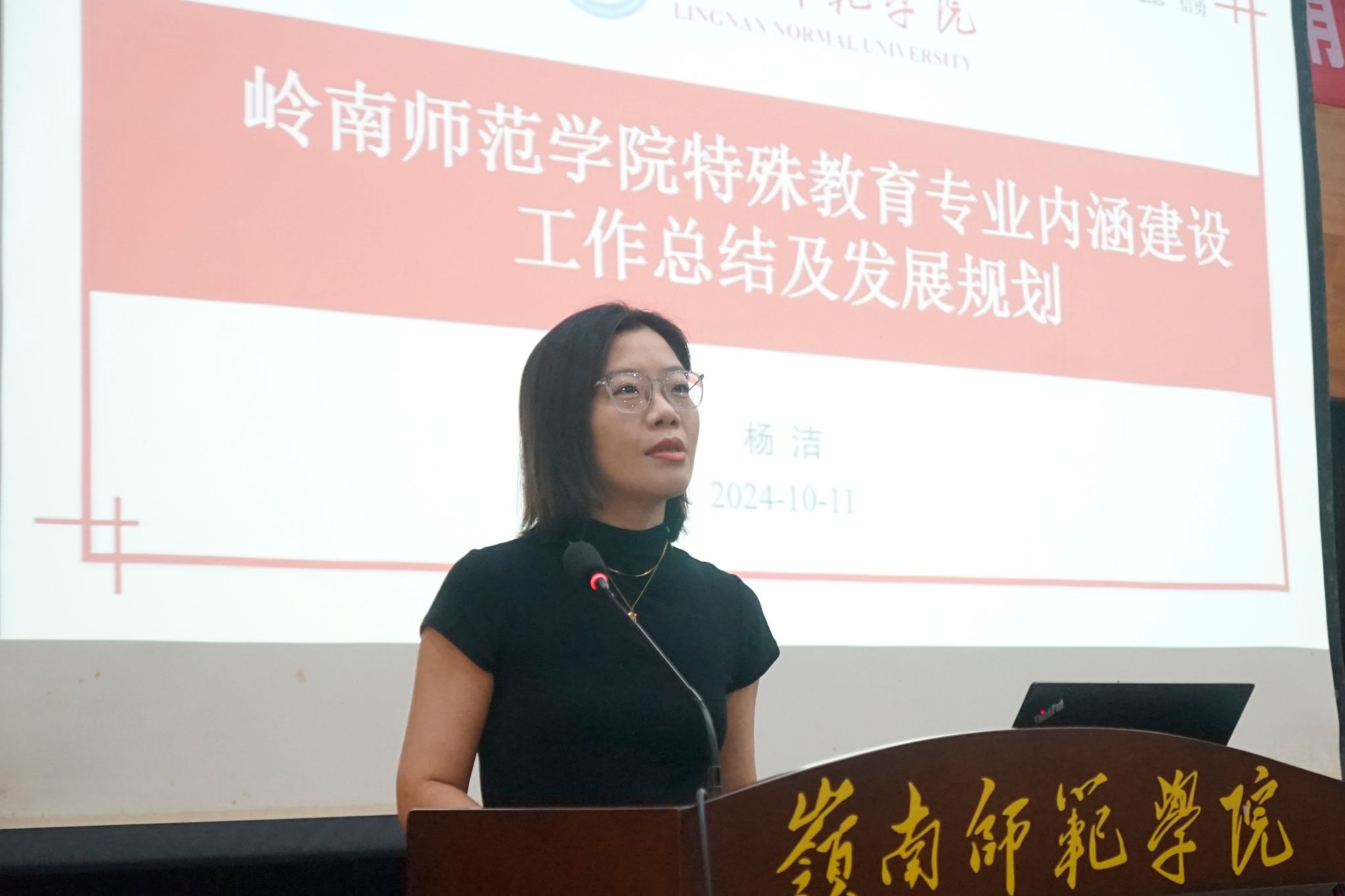 学校特殊教育专业“四协同”人才培养模式取得了较好成效,曾列入申硕材料,也作为学校审核评估案例进行了推荐报送,具有一定影响力。该专业代表杨洁老师对特殊教育专业的建设情况进行了介绍。她从近三年学院专业建设举措与成效、问题与不足、建设目标以及未来专业建设举措四个方面对本专业进行了工作汇报。