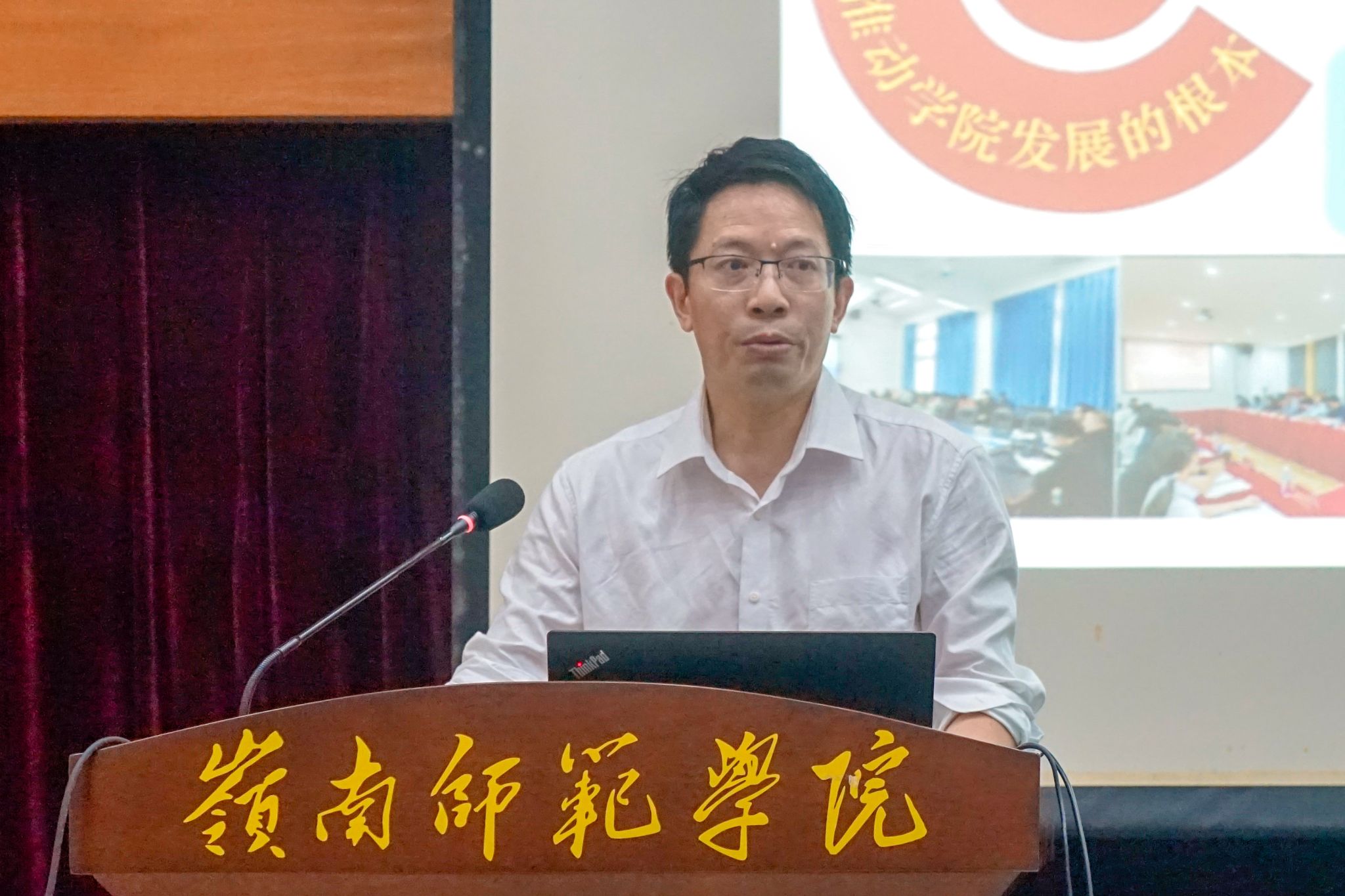 金义富在报告中分析了学校在教育教学方面面临的国际、国内形势,指出学校必须顺应数字时代教育变革潮流,以更大的力度创新育人模式、治理方式,努力培养数字时代的创新人才,学校必须大力弘扬改革创新精神,把握机遇,加强谋划,加快构建教育、科技、人才一体推进机制,奋力回答好“强国建设、岭师何为”的时代命题。他对学校下阶段的教学工作用七个“聚焦”进行部署:一是聚焦立德树人,完善“大思政”工作格局;二是聚焦内涵建设,构建与发展新质生产力相适应的专业课程体系;三是聚焦OBE理念,深化本科教育教学改革创新;四是聚焦AI赋能教学,提升教育教学有效性;五是聚焦教育家精神,提高教师教书育人能力;六是聚集各方资源,推进产教融合协同育人;七是聚焦“五自”(自觉、自省、自律、自查、自纠)质量文化,形成质量闭环。