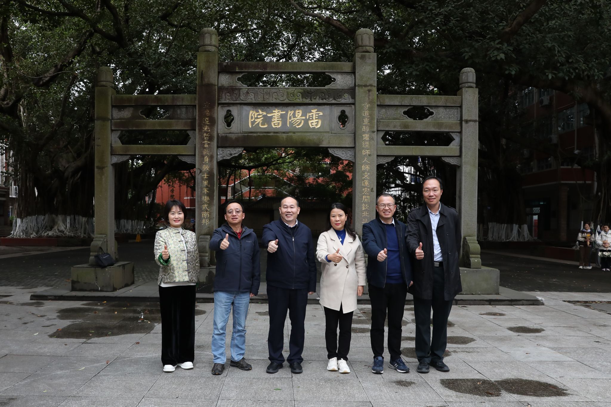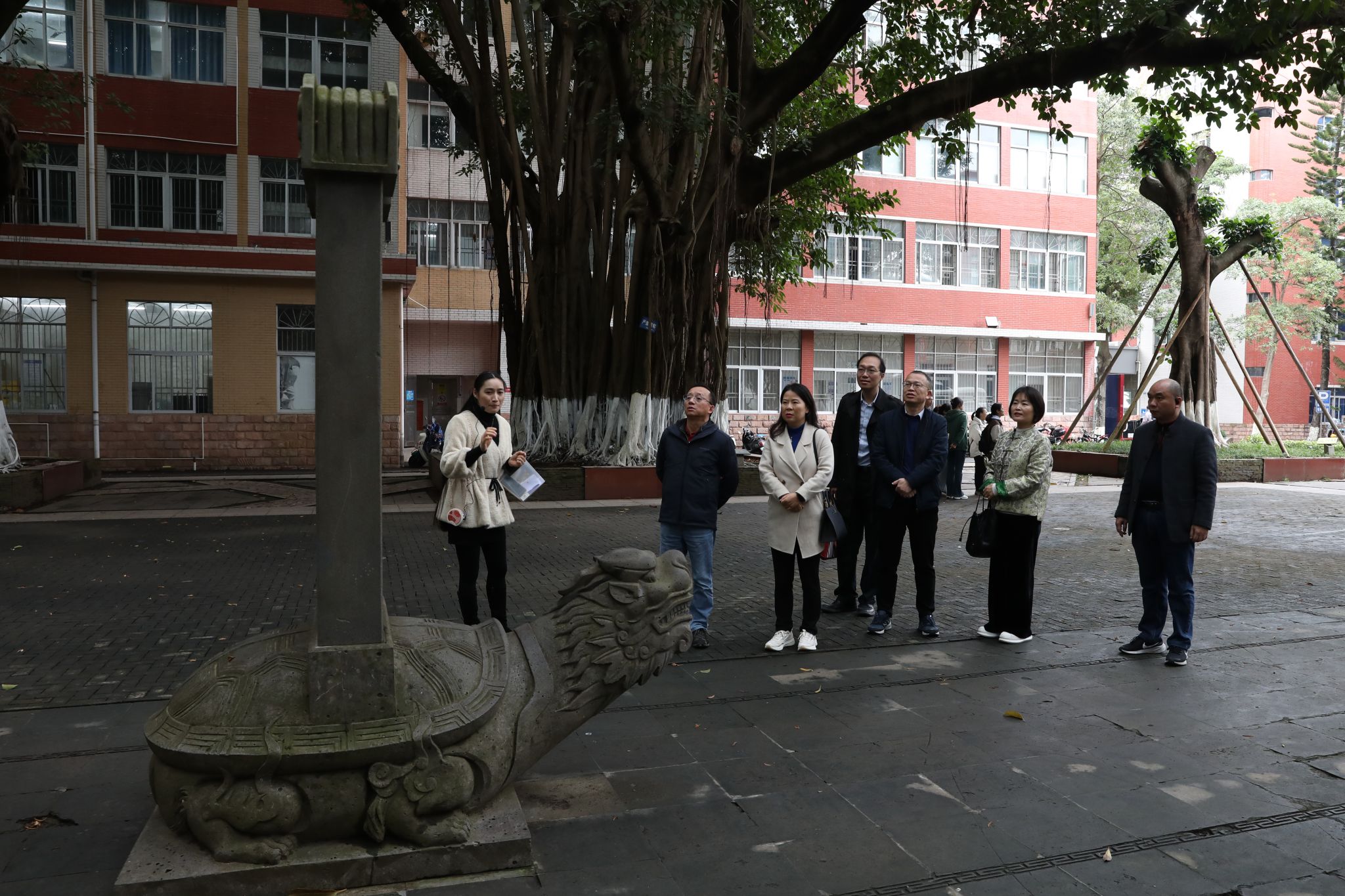 严奉强一行还走访参观了学校古榕广场、谭平山纪念园、百年师范纪念塔、广东省特殊儿童发展与教育重点实验室、美术馆“尚美薪传”书法展、师道园等。