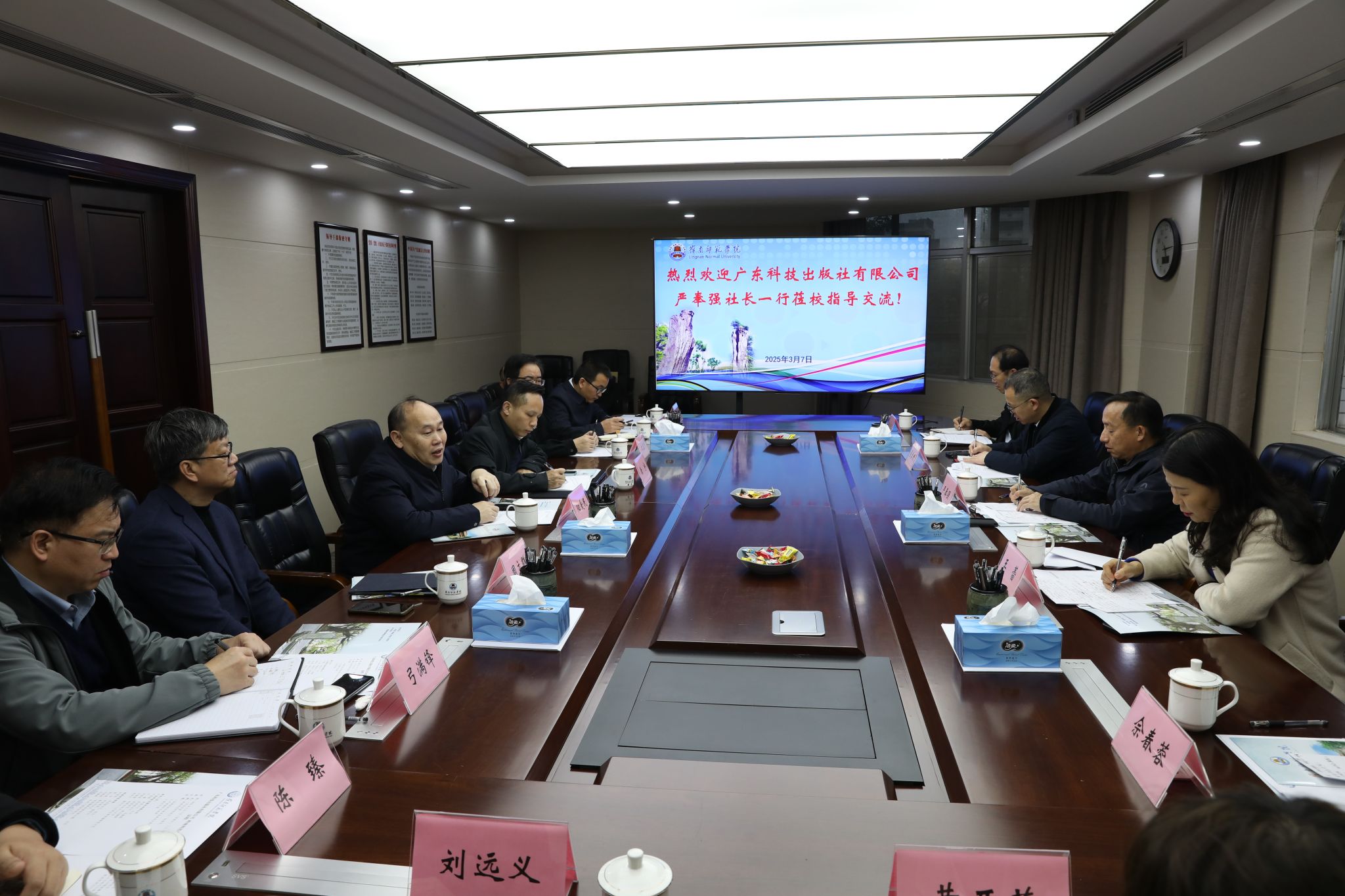 岭师新闻中心讯:3月7日下午,广东科技出版社有限公司党委书记、社长严奉强率队赴岭南师范学院开展调研交流。双方围绕职业教育教材出版、科技类图书合作、学术期刊建设等领域展开深入探讨,并聚焦“百千万工程”实施路径,共商校企协同发展新举措。学校党委副书记、校长阳爱民出席会议并致辞,副校长唐宇主持会议。
