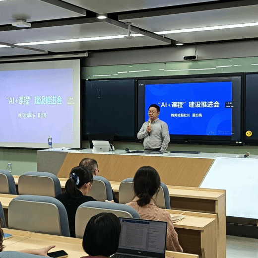 会议伊始,教务处副处长夏加亮系统梳理了学校课程建设成果与现存问题,指出将通过搭建AI课程平台、应用AI技术重塑学习场景,推动课程建设向数字化、智能化转型。
